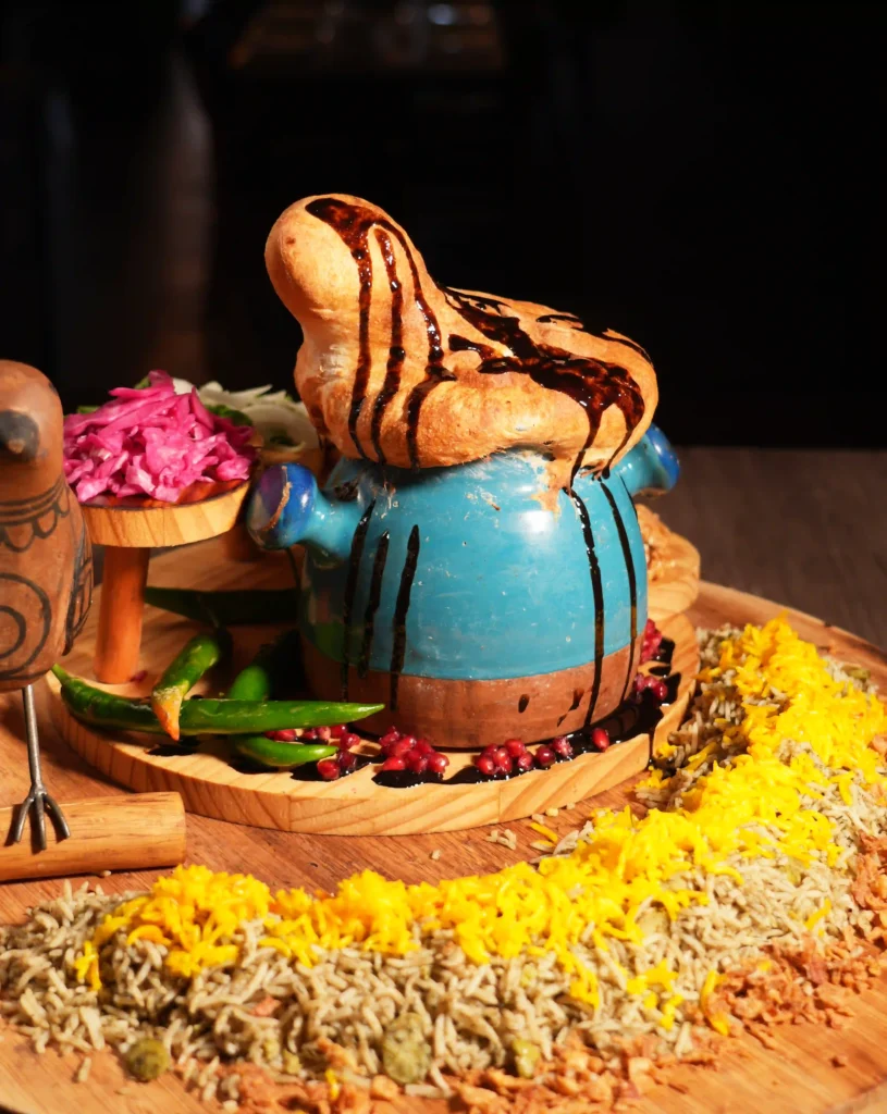 Tender lamb shanks slow-cooked until falling off the bone, served with rich herbs and spices on a hot stone.