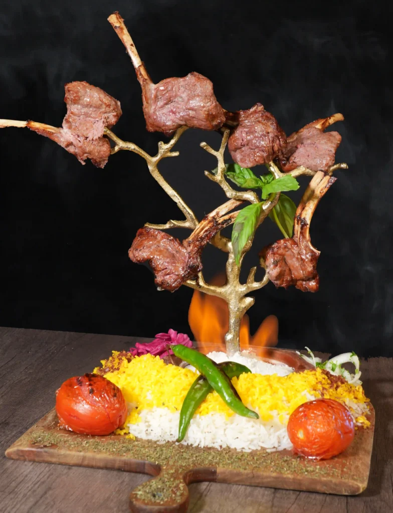 Juicy lamb chops marinated in saffron and spices, grilled to perfection. Served with saffron rice.